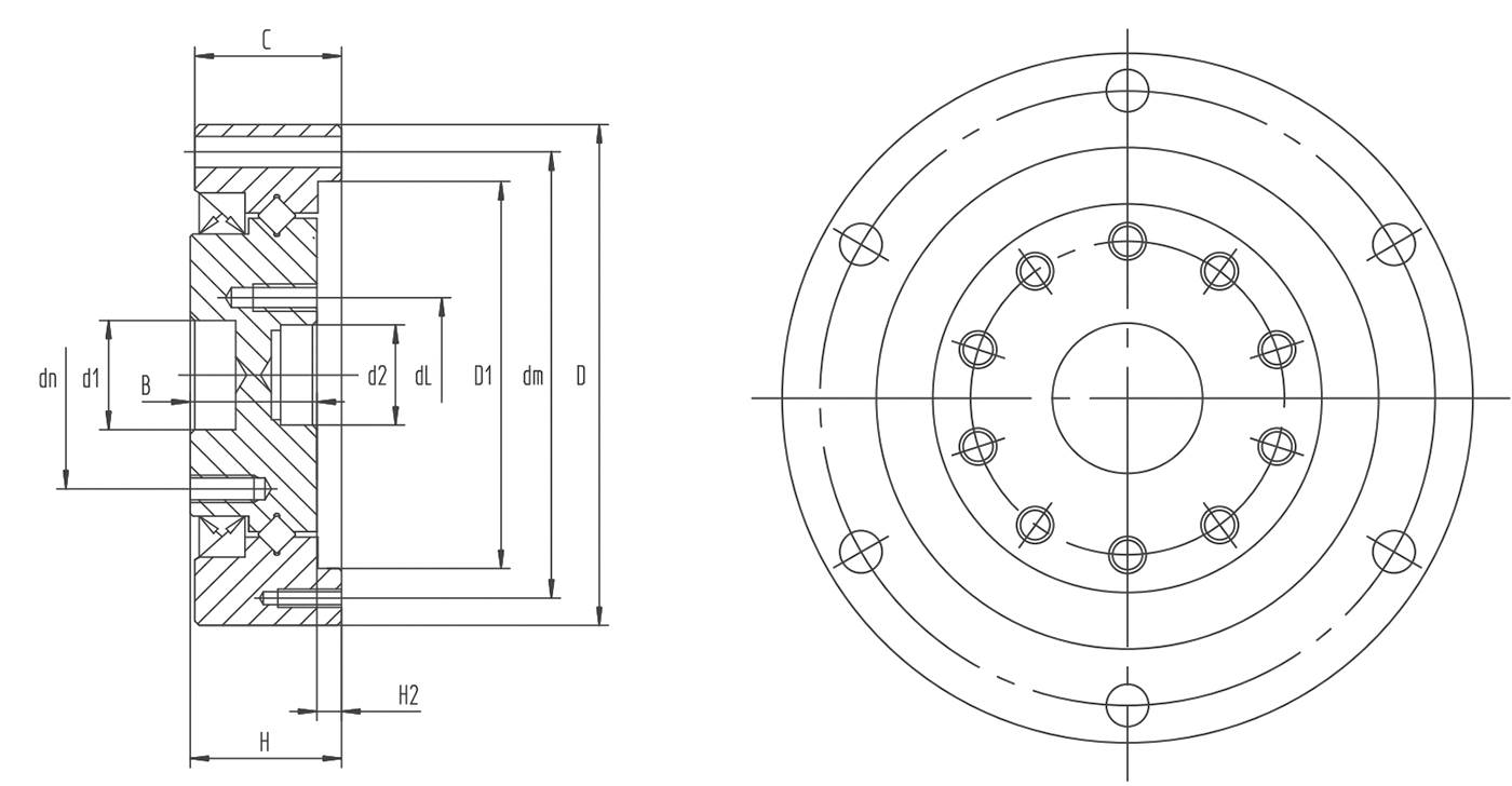 | CDS-20 | φ18 | φ16 | φ70 | 18.3 | 17.8 | 15.6 | 2.7 | φ57 | φ64 | 12-φ3,5 | 4-M2 (Profundidad de seda 5) | φ34 | 8-M6 (Profundidad de seda 9) | φ24 | 8-M4 (Profundidad de seda 8) | 5.8 | 9 | 0.42 |
